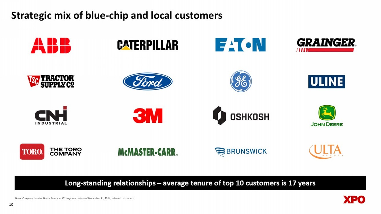 Strategic mix of blue - chip and local customers 10 Note: Company data for North American LTL segment only as of December 31, 2024; selected customers Long - standing relationships – average tenure of top 10 customers is 17 years